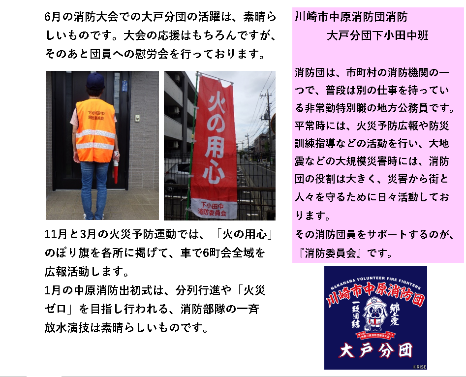| その他活動協力 | 大戸社協女性部・多摩川清掃・大戸神社盆踊り・なかはら夢区民祭(踊り)・大戸神社祭礼(演芸) |