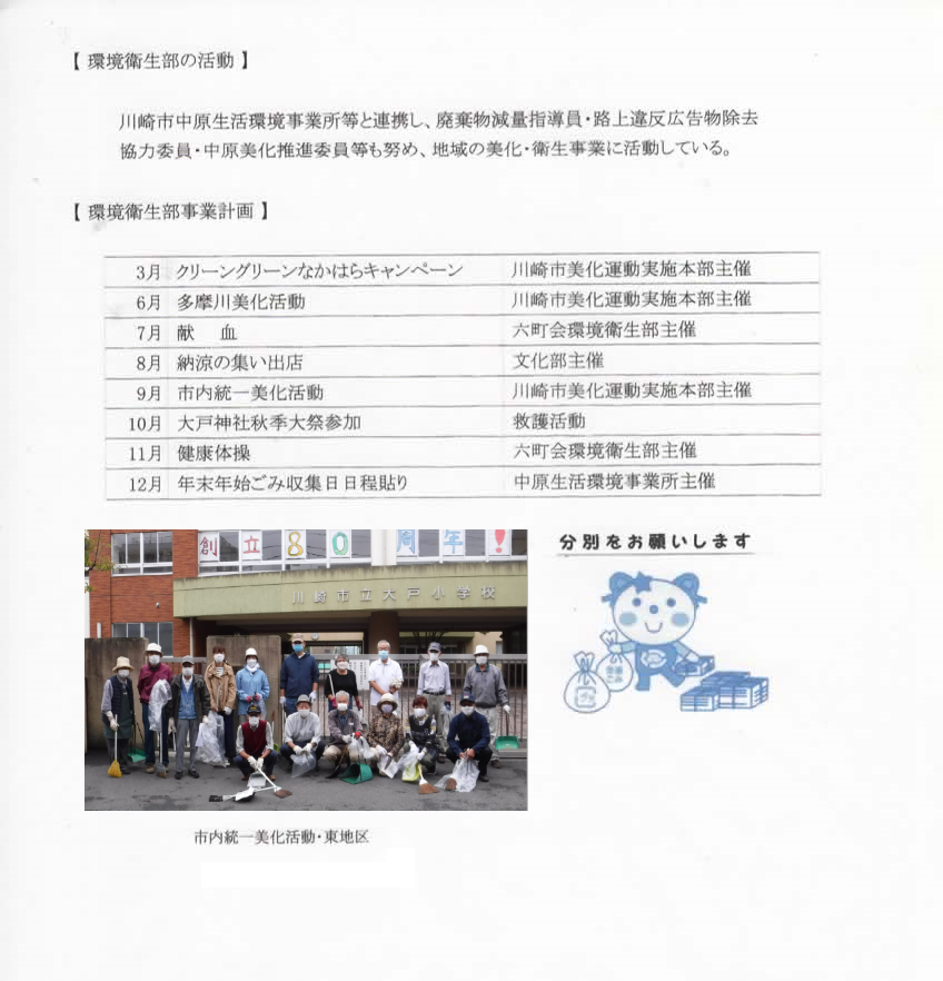 町会では専門的な役割を担当する各種部を設けており、部長以下数名の部員で活動しています。
